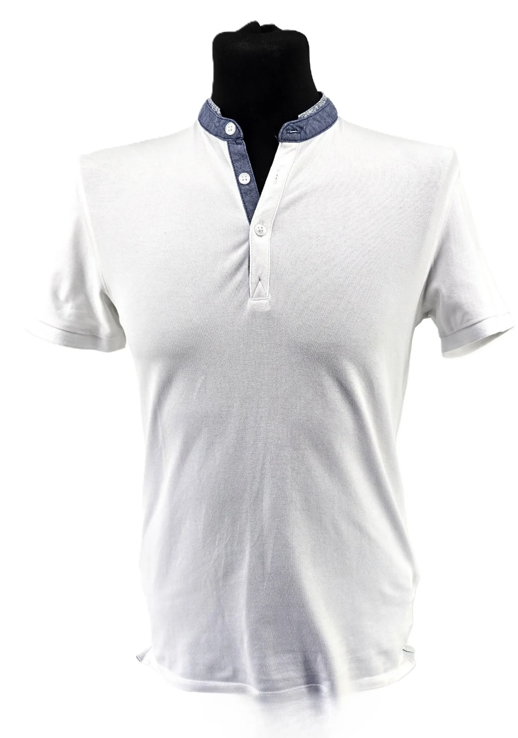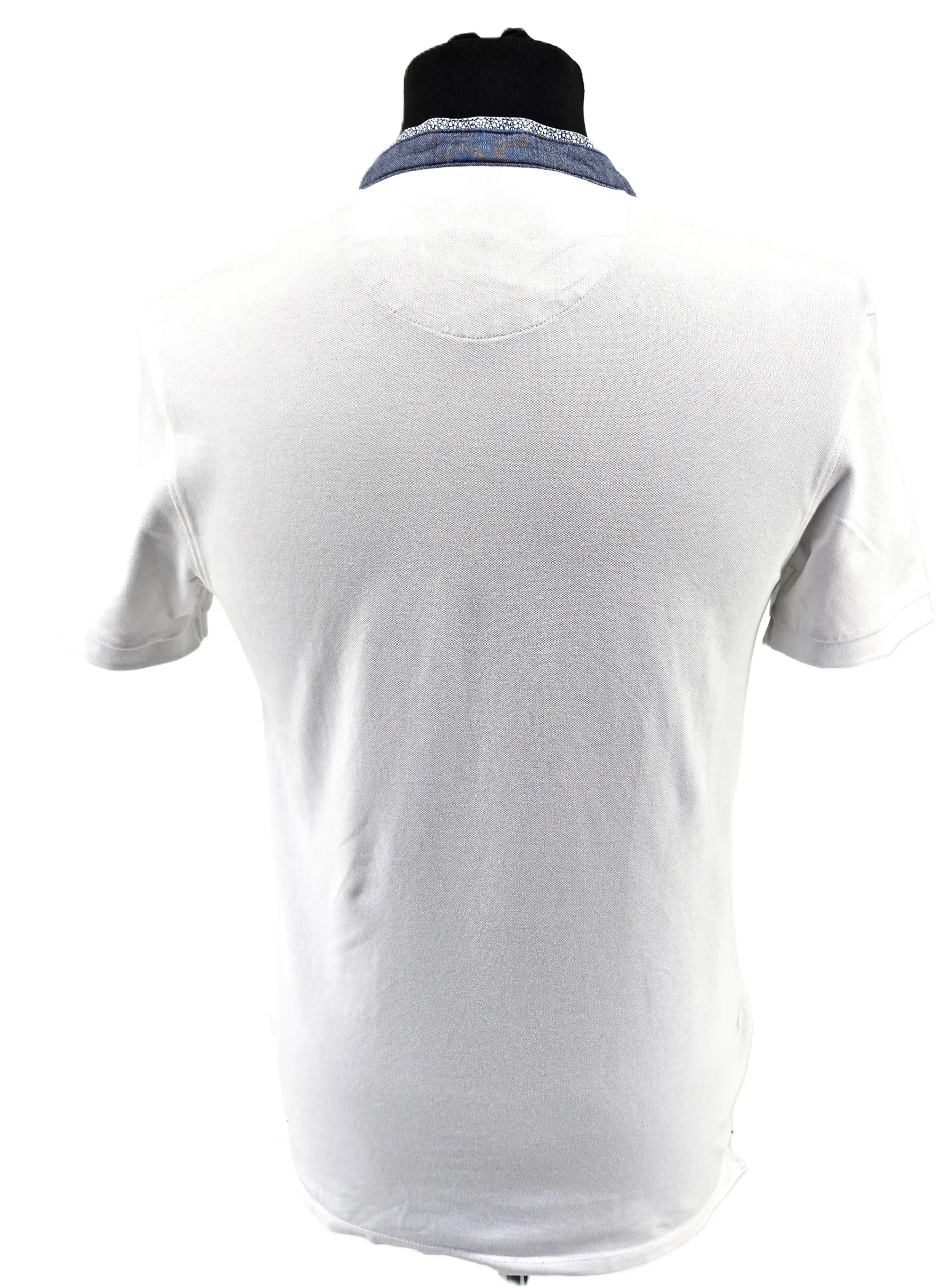This refined piece belongs to the category of Men’s T-shirts and combines casual comfort with subtle design details. The white cotton fabric creates a clean, versatile base, while the contrasting blue patterned collar introduces a distinctive visual accent. This balance between minimalism and detail makes the shirt suitable for both relaxed and slightly elevated casual outfits.