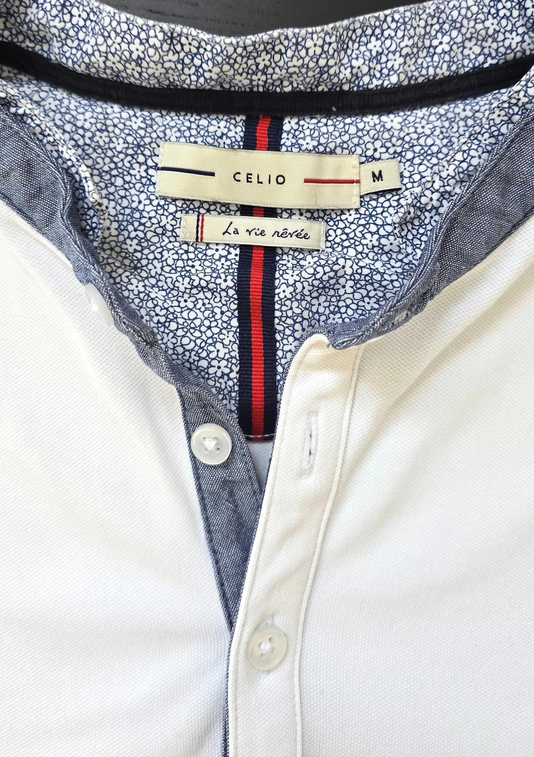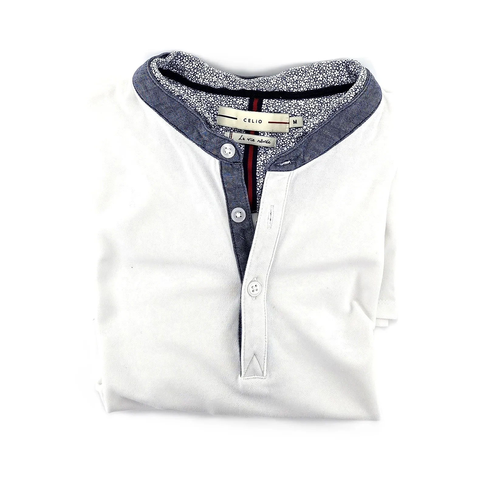 Minimalist shirts with subtle design details remain a staple in modern casual wardrobes. This Celio model combines the comfort of a classic T-shirt with the elegance of a structured collar. If you appreciate simple clothing enhanced with thoughtful details, this piece from the Vouge Vintage store offers a versatile addition to everyday outfits.