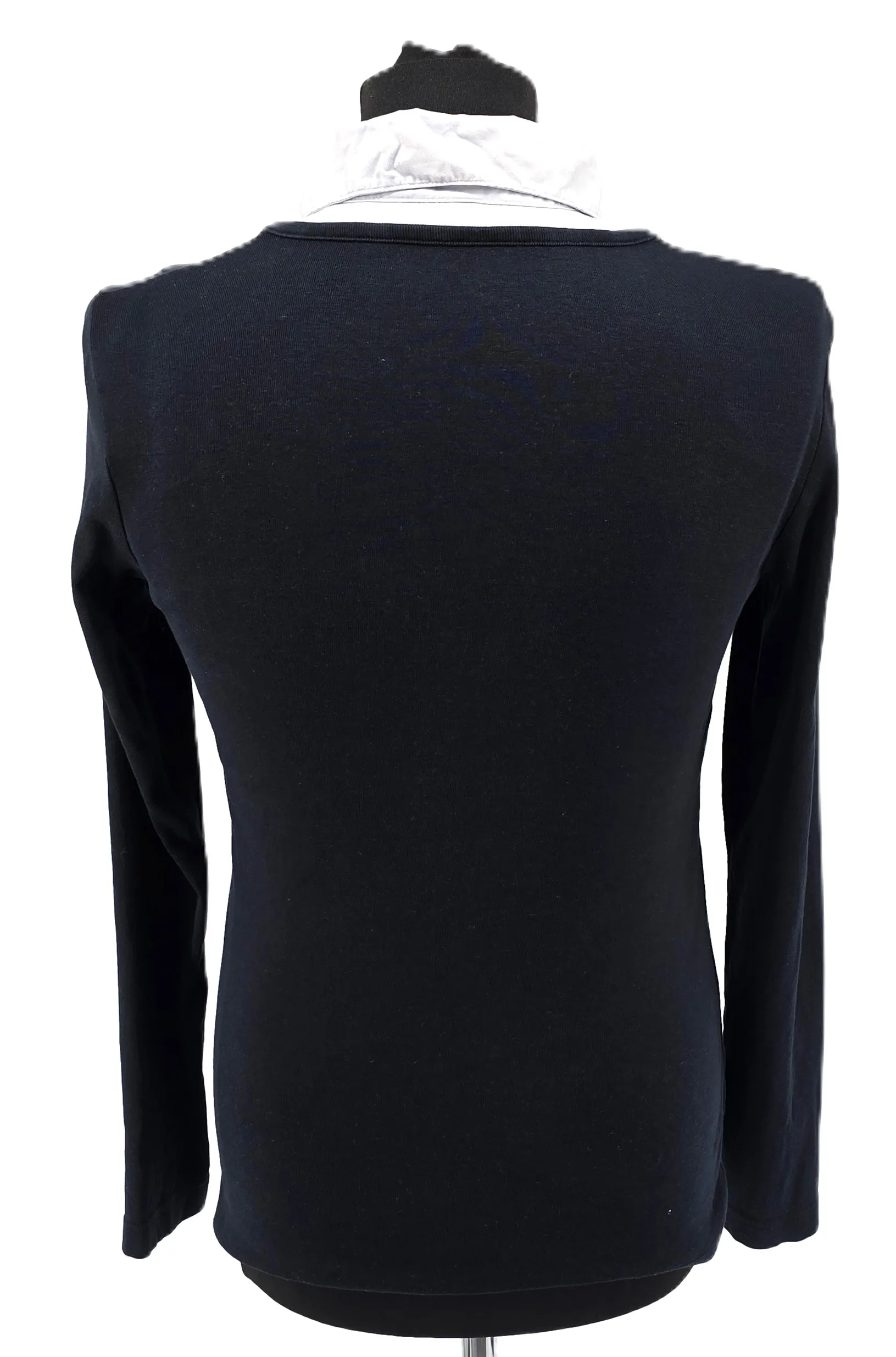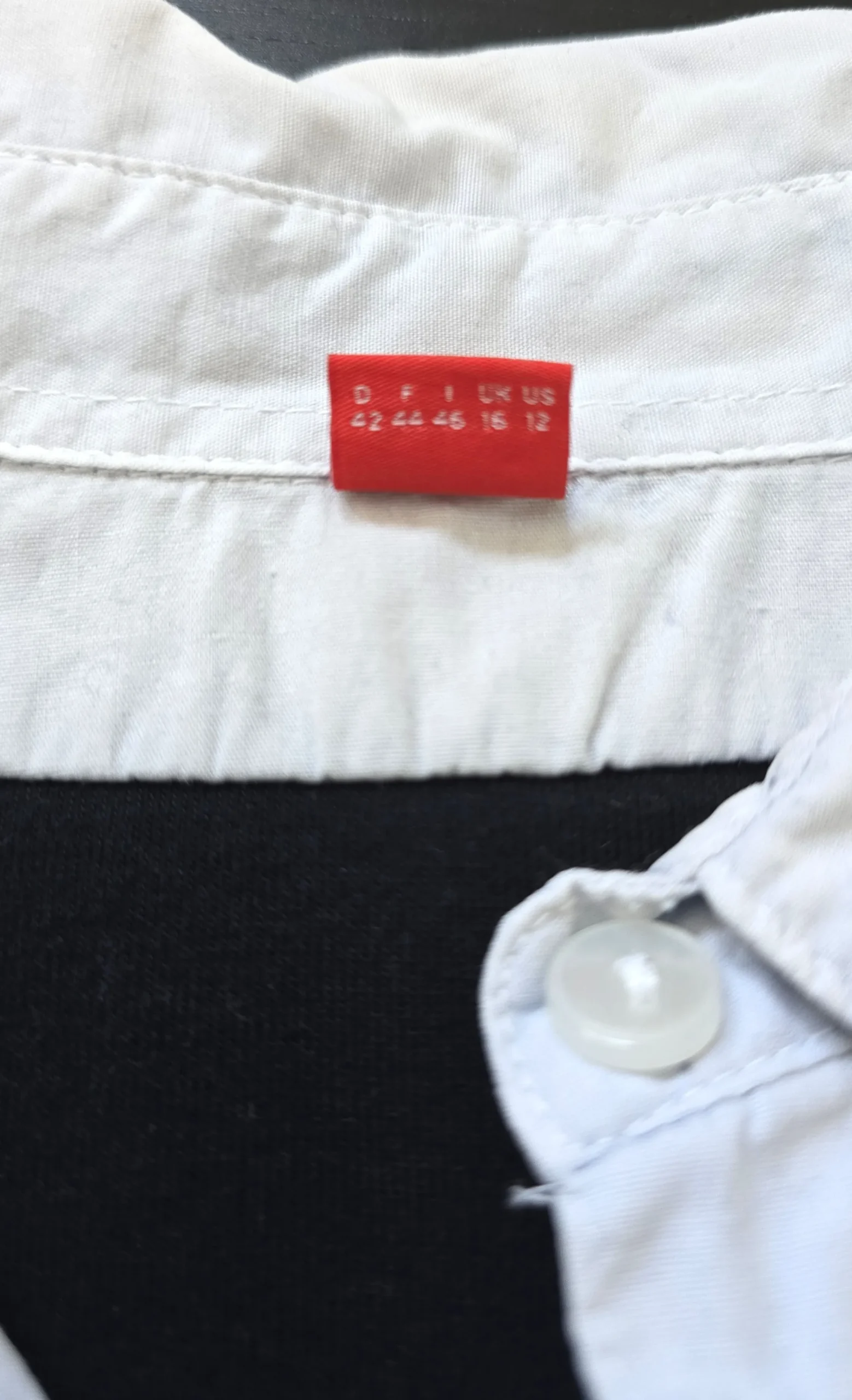 - Contrast white shirt-style collar