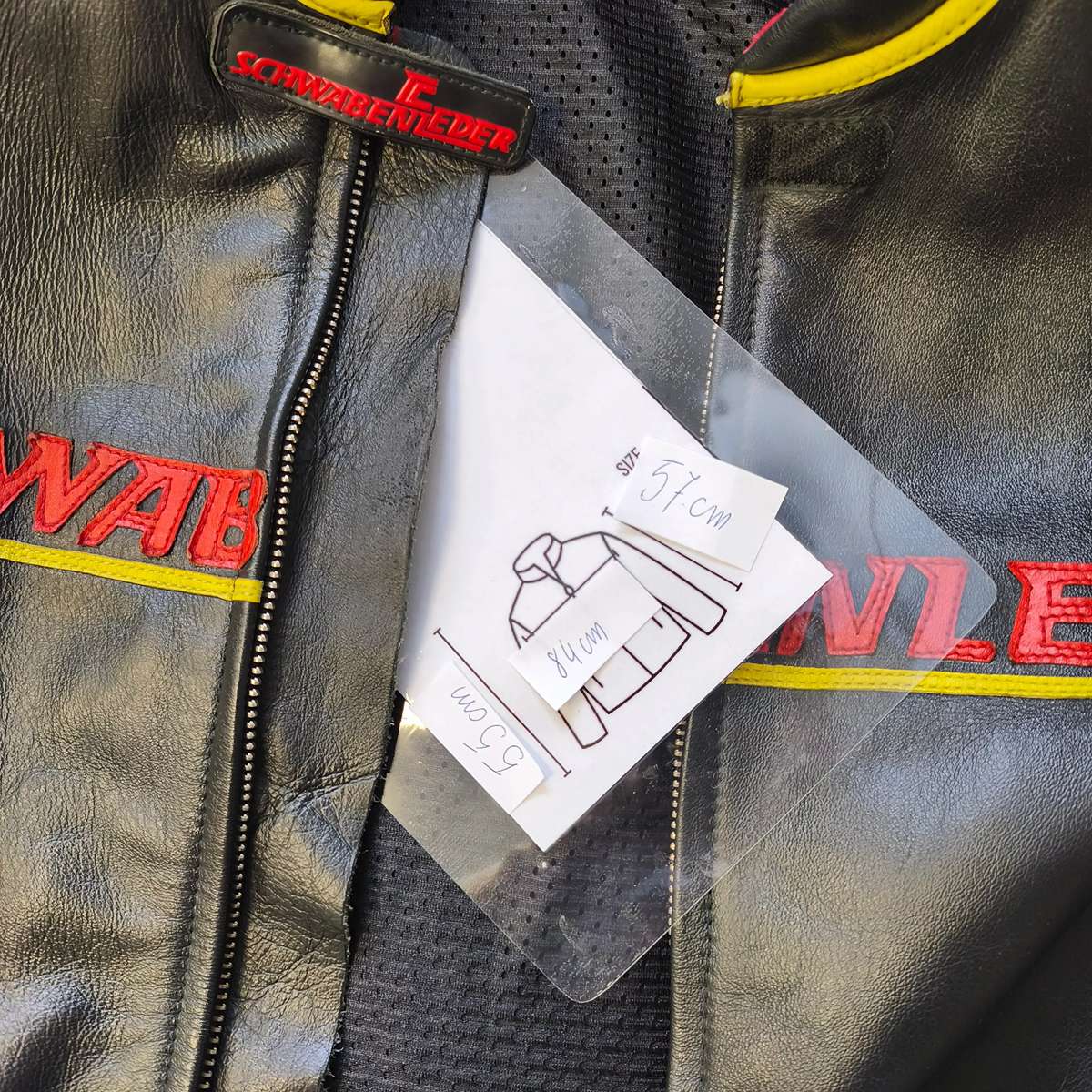 The design includes a large motorcycle graphic on the back and the iconic Schwabenleder embroidery across the chest. Known for producing high-quality riding apparel, the brand created garments that balanced durability and comfort. Thanks to its perforated interior lining, the jacket also works well among breathable summer jackets for men during warmer riding conditions.