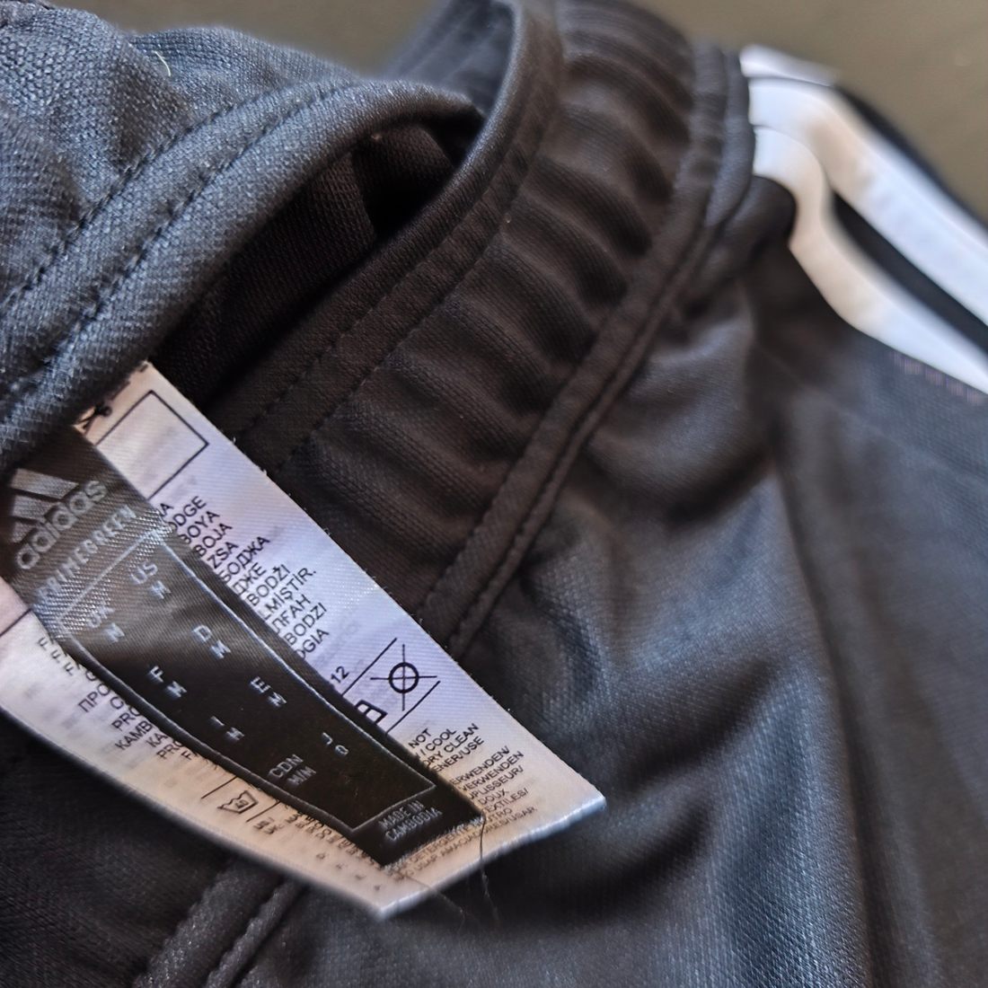 Vintage Adidas track pants in classic black with white side stripes. Lightweight fabric, elastic waistband, and slim retro cut. Perfect for men’s sportswear, workouts, or casual streetwear looks. A timeless vintage piece with everyday comfort and style.