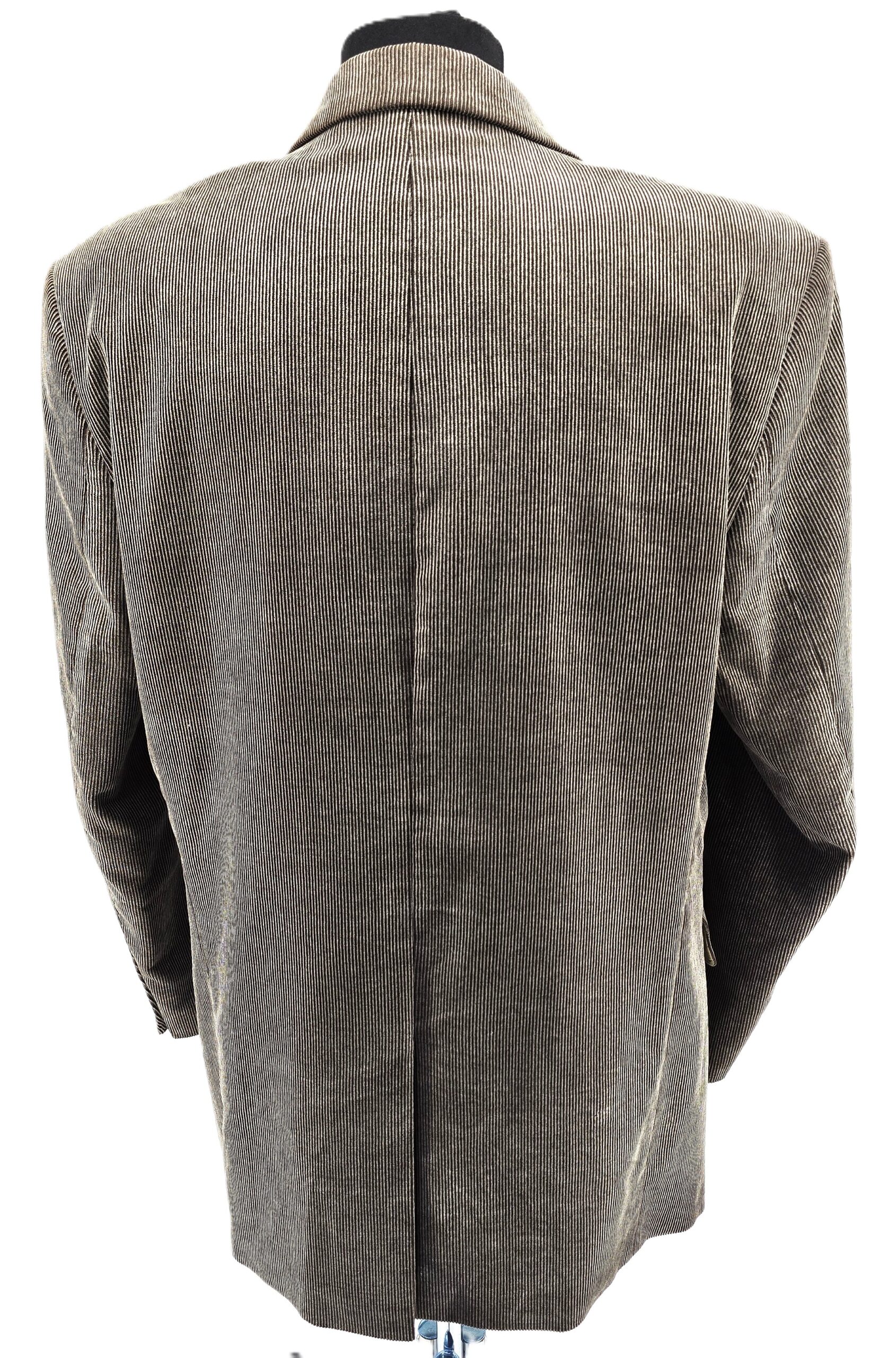 Vintage men’s suits from the 70s and 80s are symbols of confidence and power. Corduroy blazers, once a staple of retro tailoring, have returned as modern style icons. This Giorgio jacket carries the spirit of that era, offering a timeless men’s blazer that stands in contrast to today’s mass-produced garments.