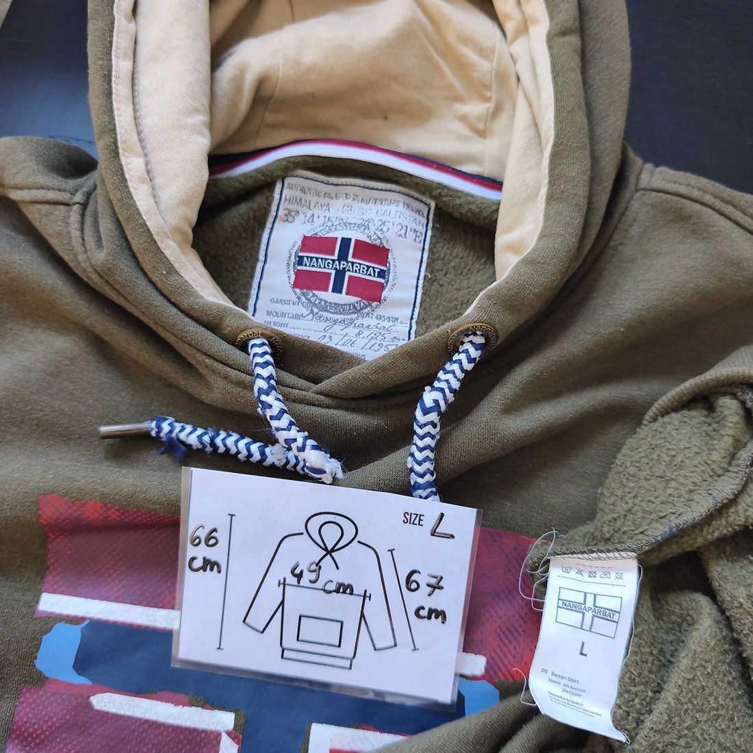 This vintage hoodie Nangaparbat in deep olive green offers timeless comfort and outdoor-inspired style. Soft fleece interior, bold front flag print, and durable cotton blend make it perfect for both men and women seeking effortless retro charm and warmth year-round.