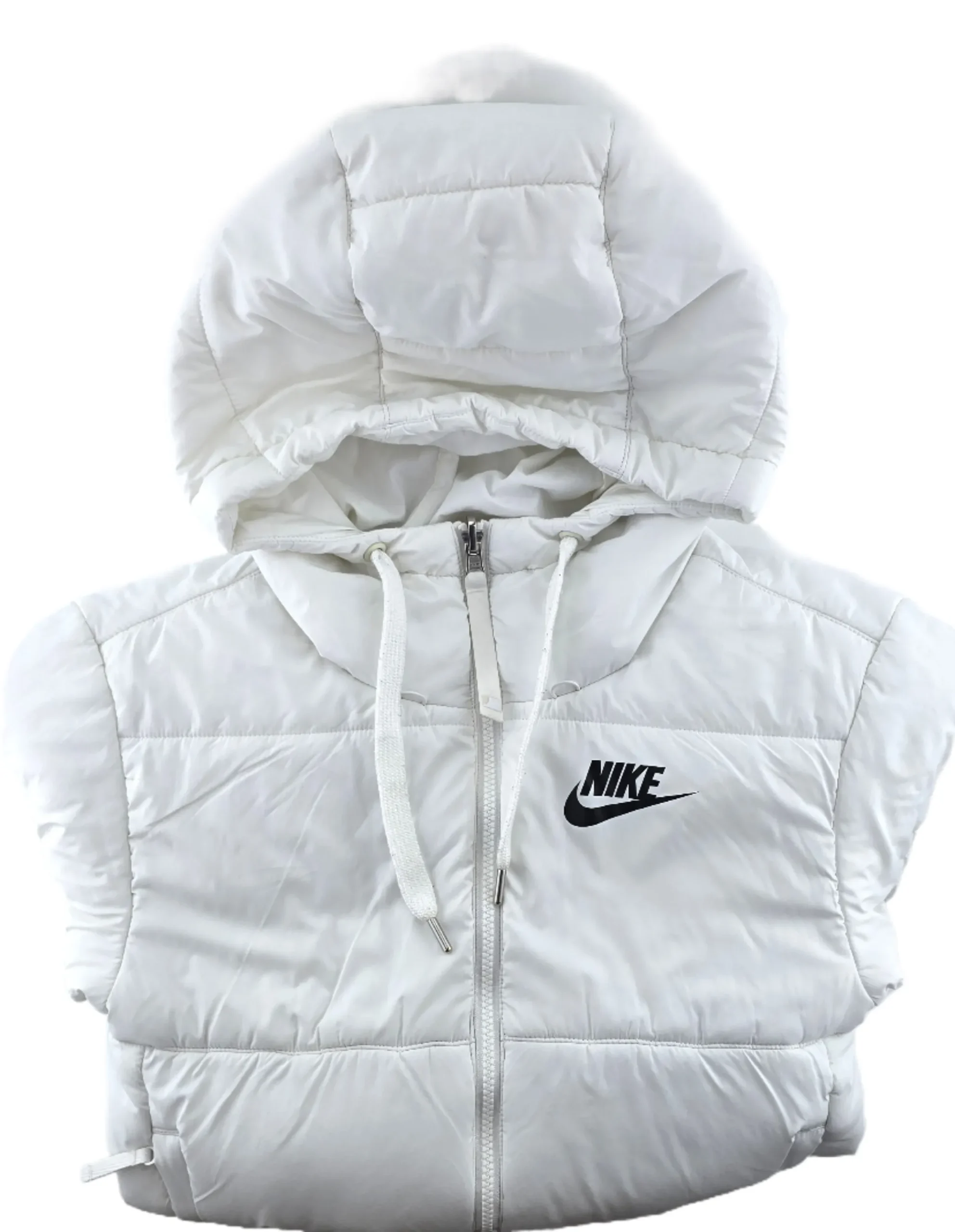 This Vintage Nike white puffer jacket in size XS blends retro vibes with timeless comfort. Lightweight yet warm, it’s ideal for layering. Perfect for streetwear lovers who value unique vintage clothes with sporty flair. Get yours and stand out sustainably.