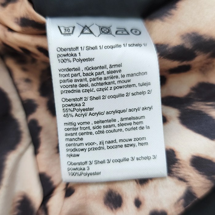 Made from high-quality polyester with acrylic blend panels, this coat combines softness with durability. The interior is lined with a smooth, animal-print fabric that feels luxurious to the touch. Every detail, from the large buttons to the tailored seams, reflects refined craftsmanship typical of Bonita’s vintage outerwear.