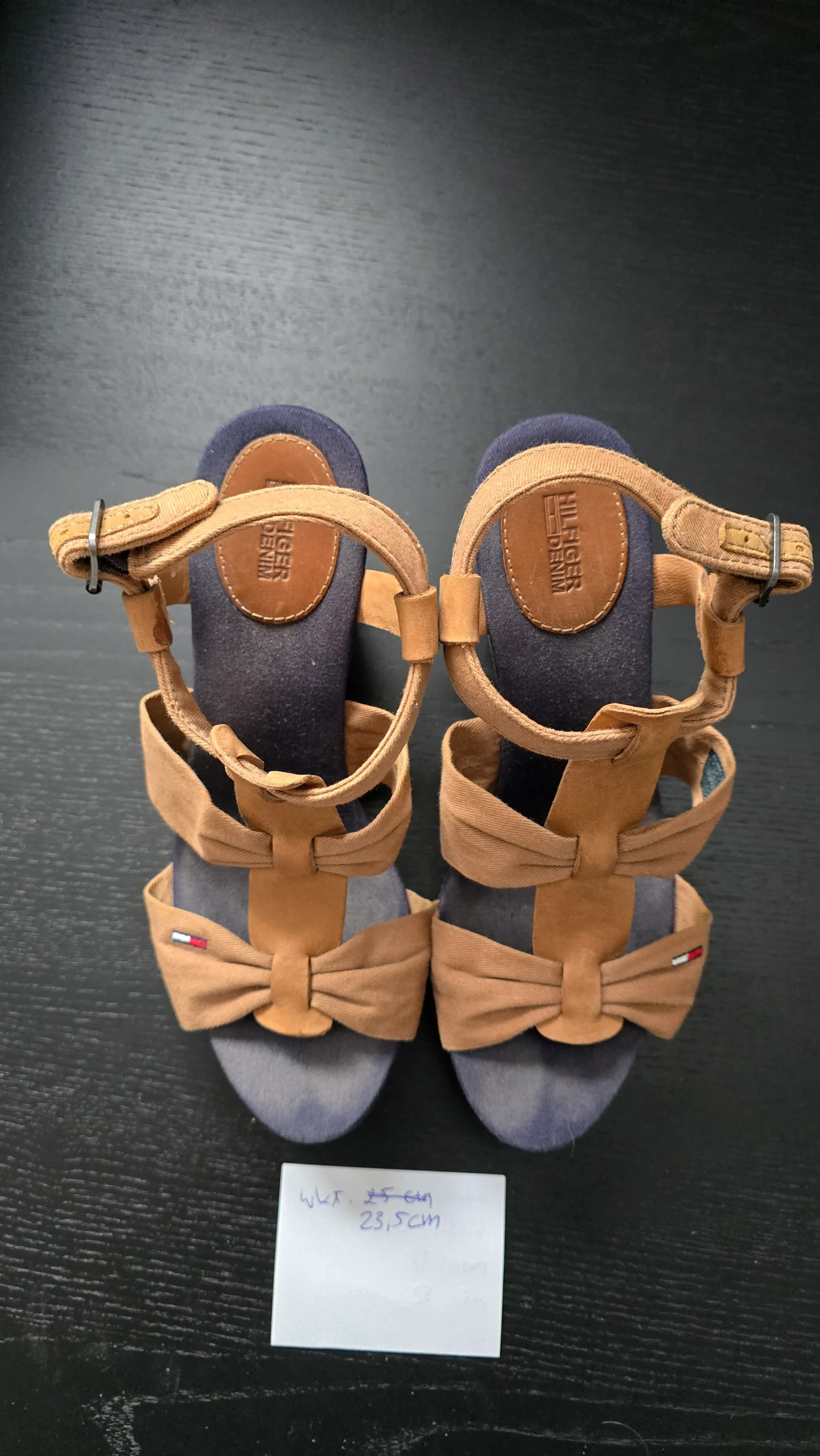 Ready to wear them this season? Add these Tommy Hilfiger wedges to your rotation and enjoy an easy summer lift with a secure ankle strap. Perfect if you love Pre-loved women’s footwear with character—shop now for fast EU shipping from Vouge Vintage store.