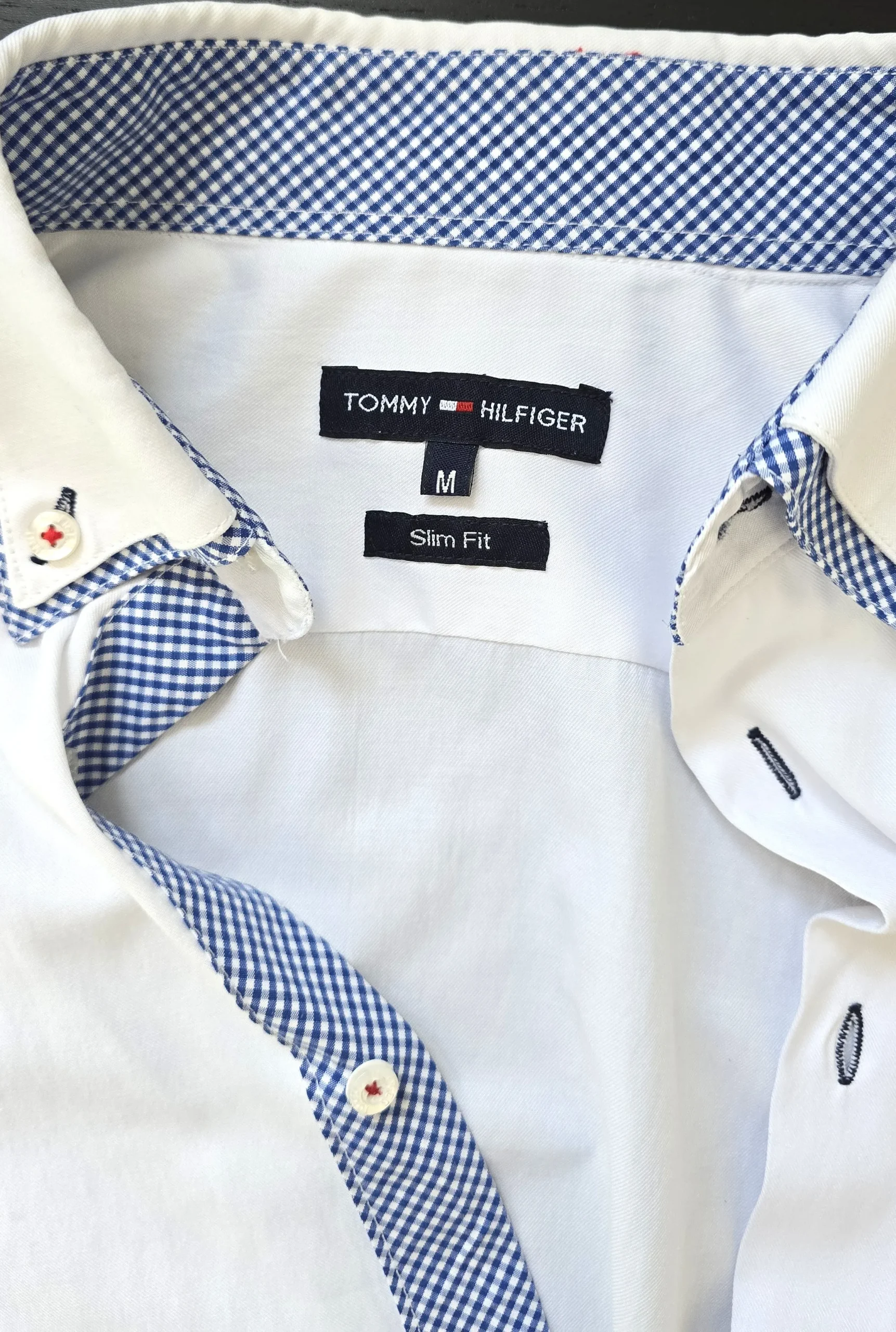 The vintage men’s shirt Tommy Hilfiger is a timeless slim-fit classic. Made of soft cotton with gingham details, it blends sophistication and casual charm. Perfect for business meetings, evenings out, or effortless weekend style from Vouge Vintage.