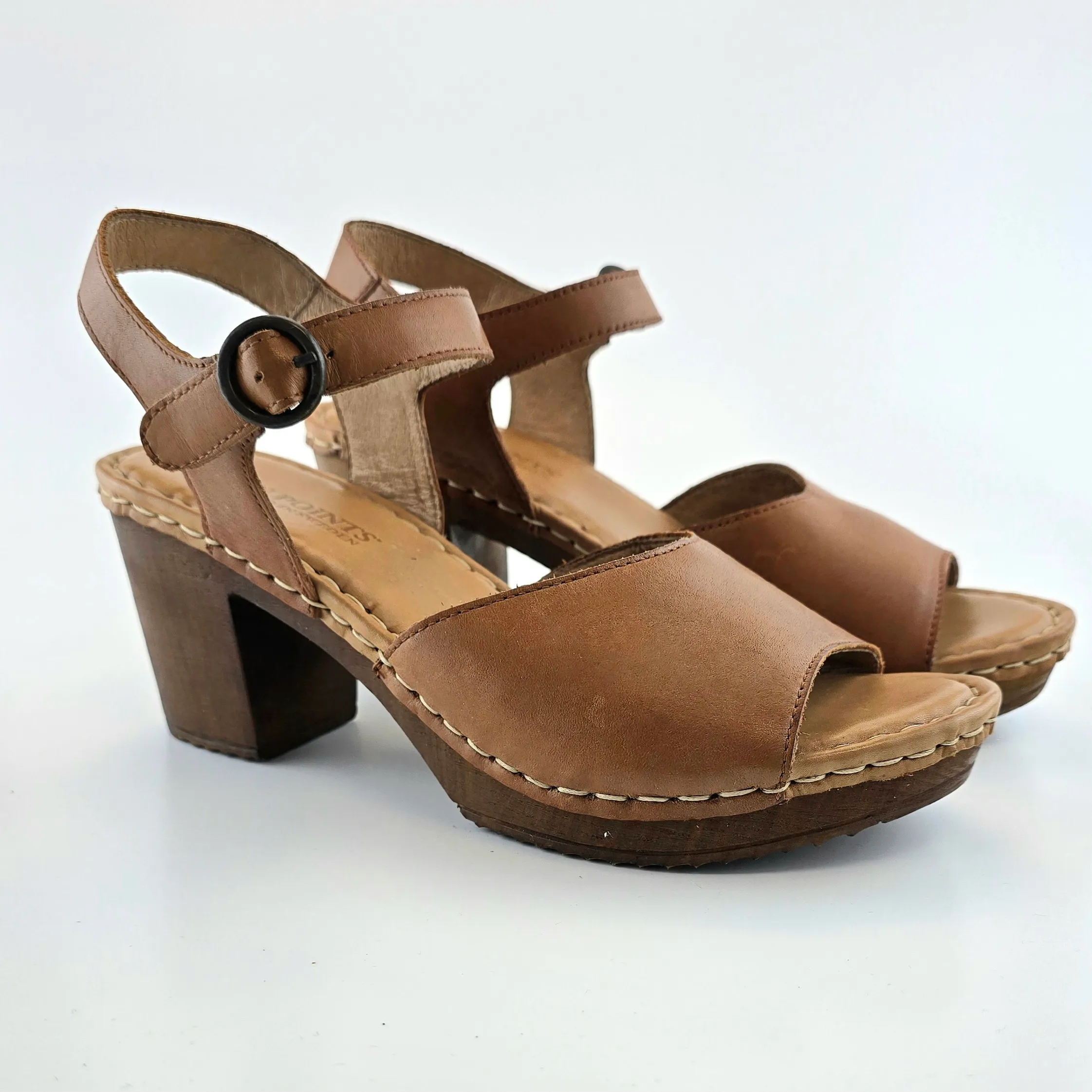 These stunning vintage brown leather sandals bring retro elegance to any wardrobe. Designed with a wooden block heel and genuine leather upper, they offer both timeless style and comfort.