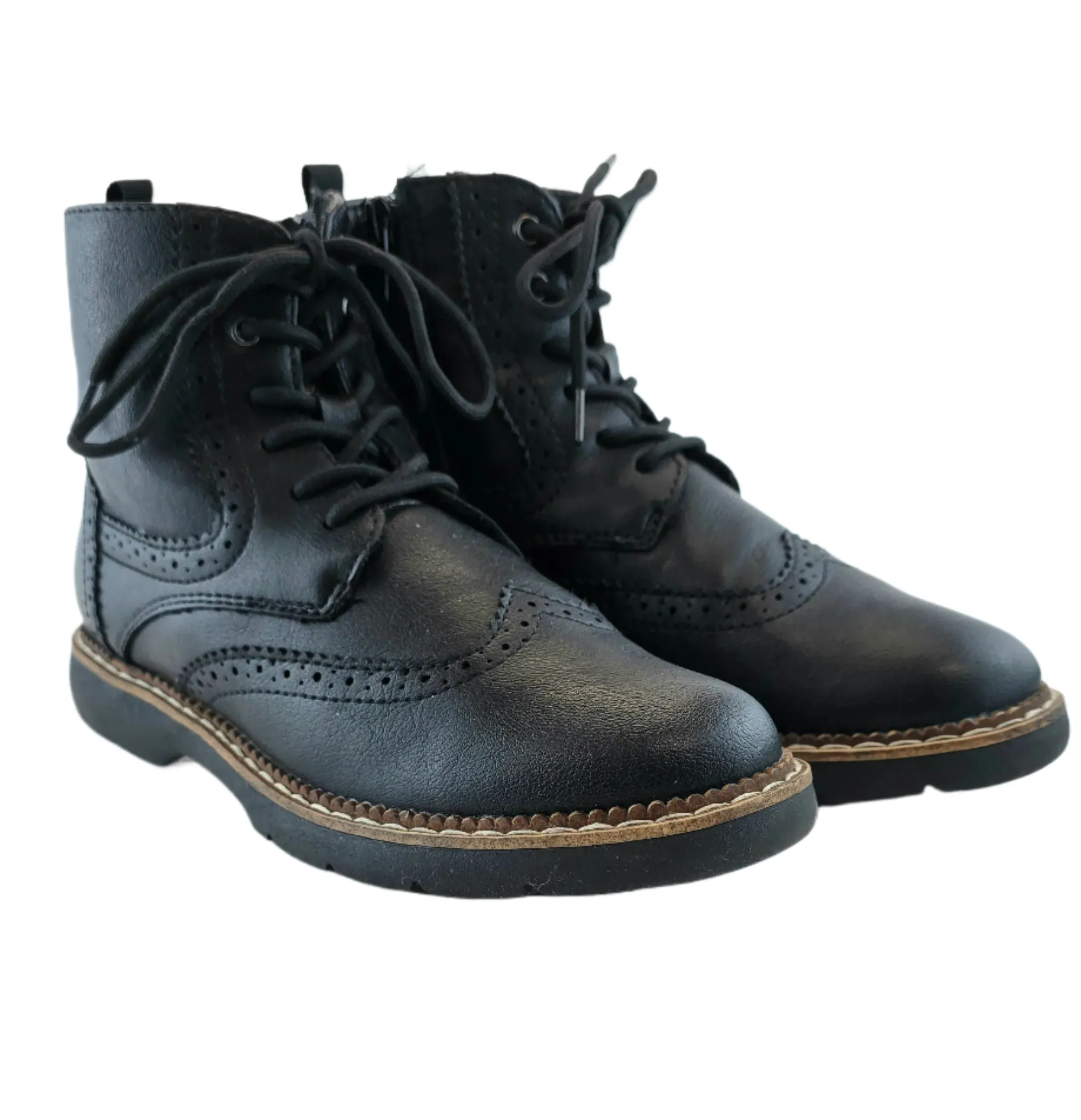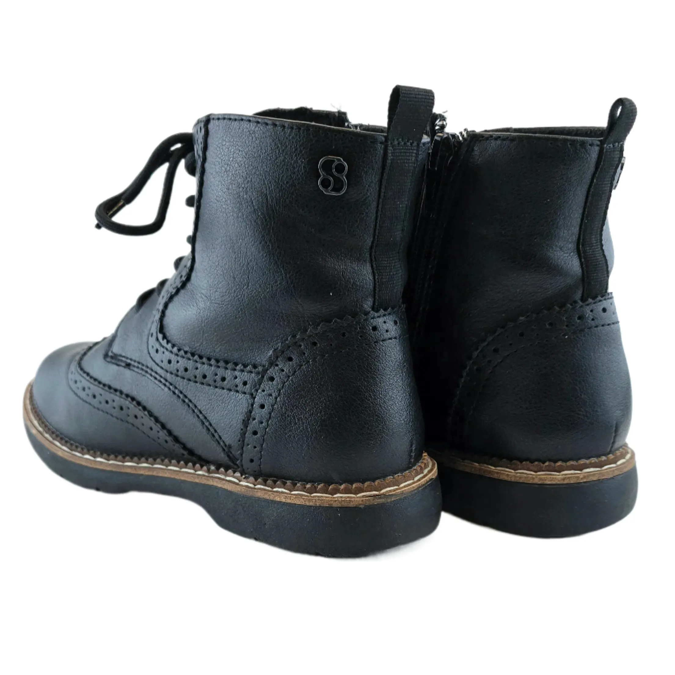 Vintage Shoes S. Oliver Black Leather Lace-Up Boots