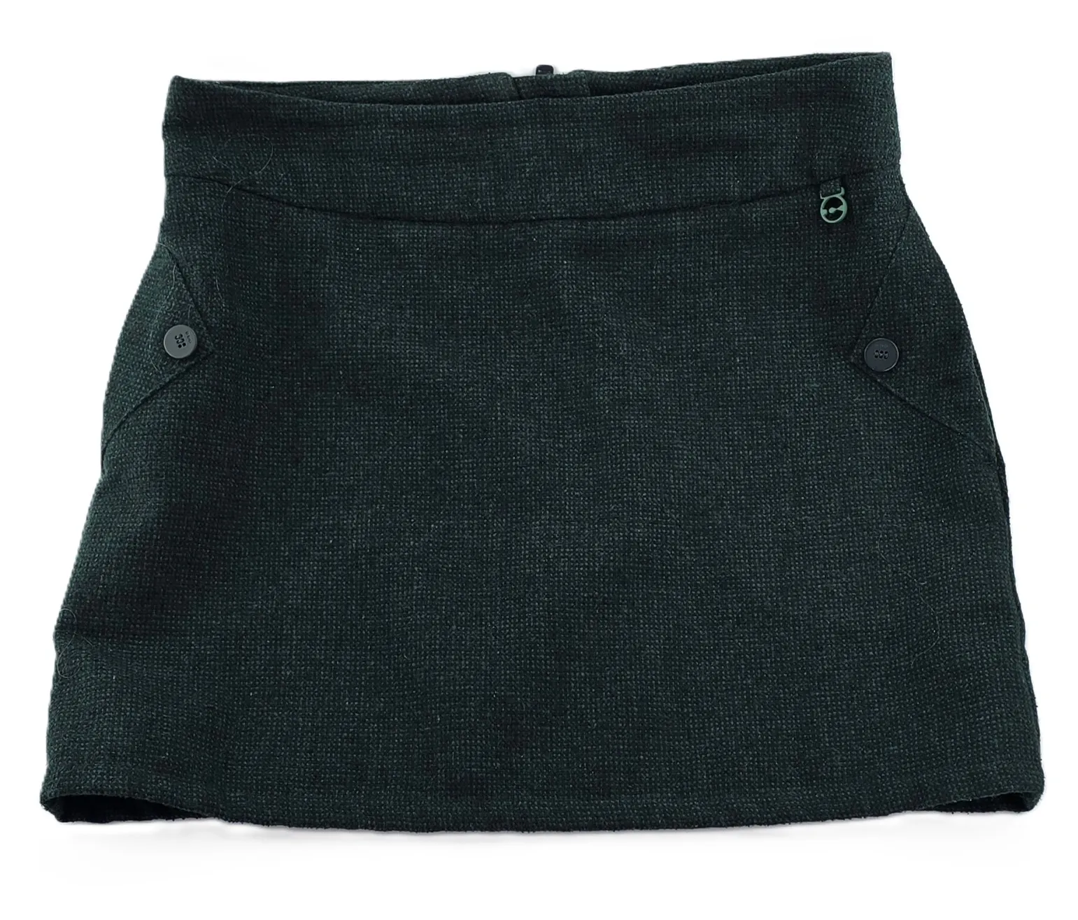 This authentic vintage skirt from 1.2.3 Paris blends timeless elegance with modern wearability. Designed in a flattering high-waisted cut, it features a structured silhouette, front button accents, and a luxurious wool-blend texture that feels soft yet structured.
