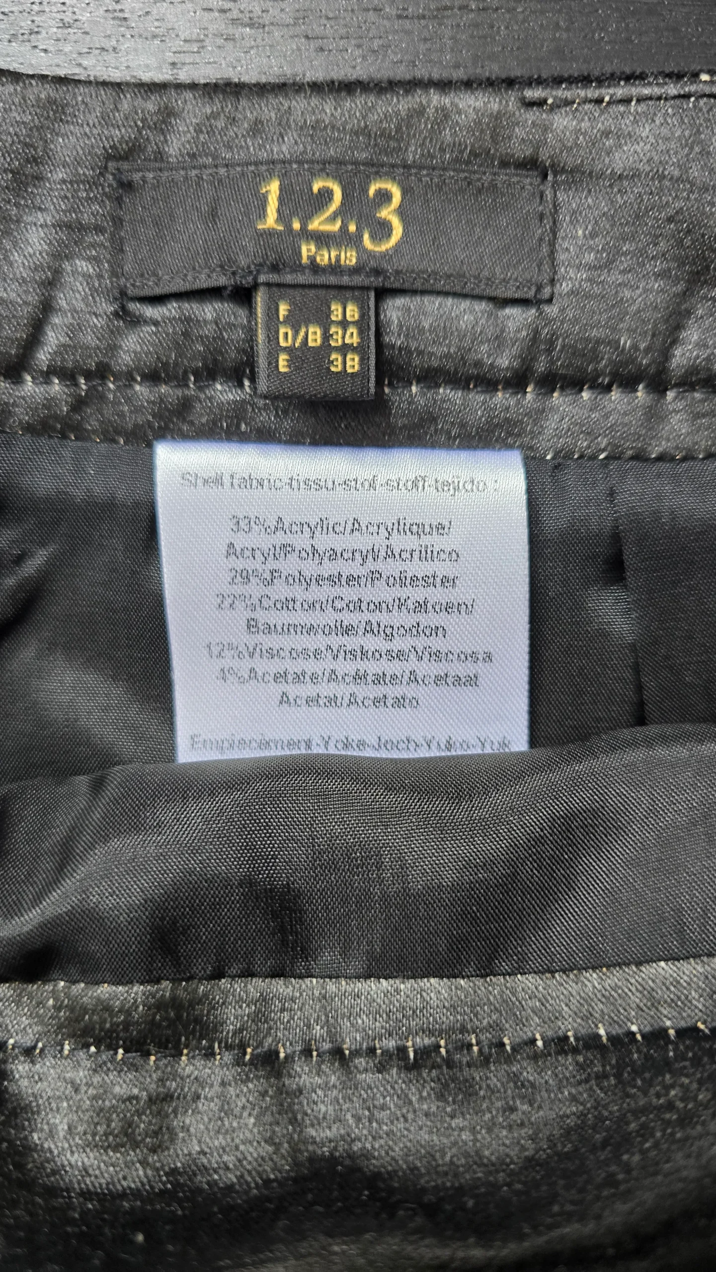 Discover this one-of-a-kind vintage skirt by 1.2.3 Paris. With its high-waisted cut, front buttons, and rich wool blend, it’s a retro treasure. Perfect for lovers of sustainable fashion. Cleaned and refreshed – ready for your next outfit combo!