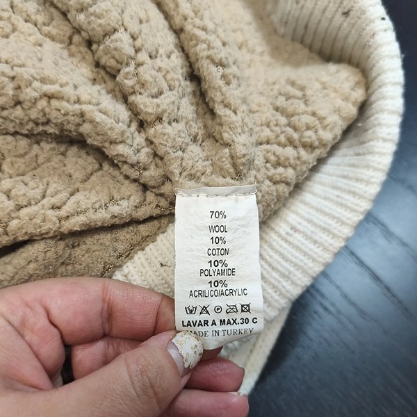 • Material composition: 70% wool, 10% cotton, 10% polyamide, 10% acrylic