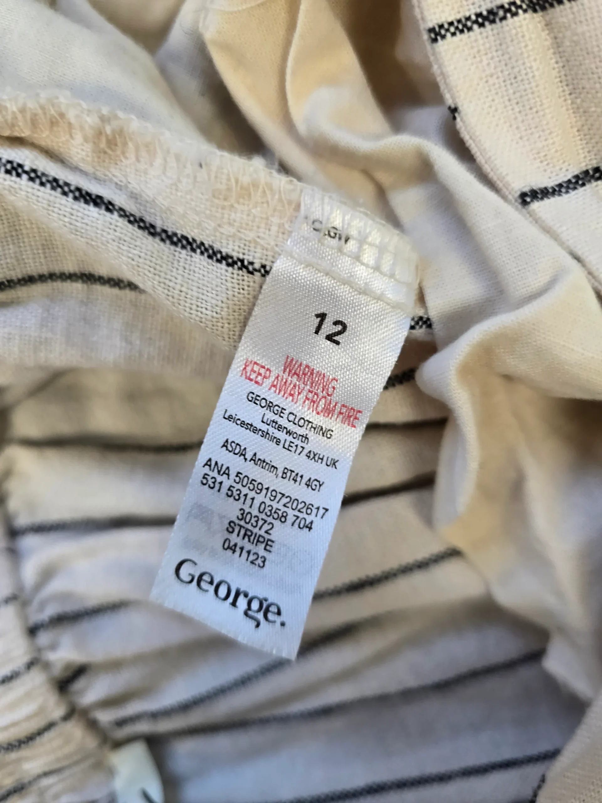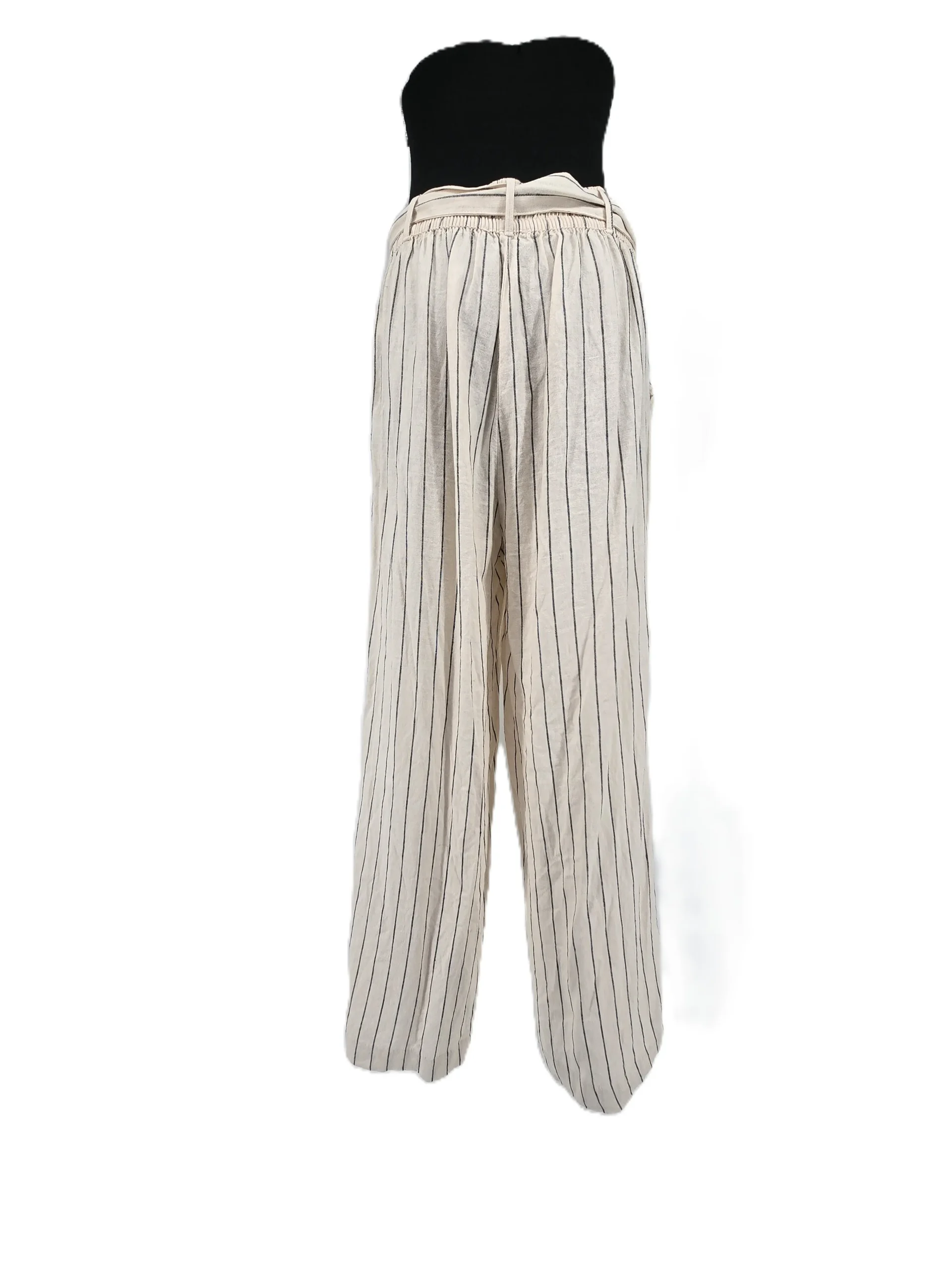 Stylish and breathable, these vintage trousers George feature a beige and black vertical stripe pattern and matching fabric belt. The wide-leg cut and elastic waist offer both comfort and elegance. Ideal for warm-weather outfits, now available in UK size 12.